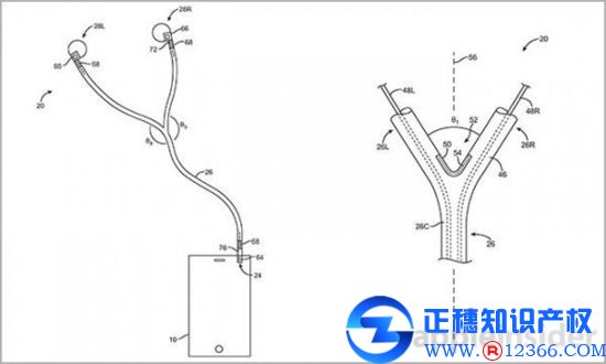 這個(gè)專利名為“內(nèi)建定向傳感器耳機(jī)線的耳機(jī)”,蘋果將其描述為可以識別一個(gè)以上的用戶存在,并自動(dòng)將音頻設(shè)定到多用戶模式,這些傳感器被內(nèi)建在耳機(jī)線Y分叉部分,可以監(jiān)測左耳機(jī)線和右耳機(jī)線角度變化。如果兩個(gè)人都使用一對耳機(jī),角度變化肯定會(huì)大于一個(gè)人使用狀態(tài)下的角度。