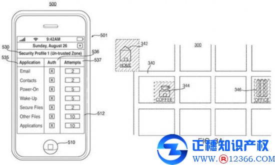 蘋果的另一項專利名為“自適應(yīng)安全配置及相應(yīng)選擇方式的電子設(shè)備”,內(nèi)容為移動設(shè)備能夠基于設(shè)備所處的位置自動禁止或允許安全協(xié)議。比如,手機通過定位發(fā)現(xiàn)自己身處用戶家中,便允許通過4位數(shù)字密碼解鎖,但發(fā)現(xiàn)不在家中時則必須使用指紋解鎖。